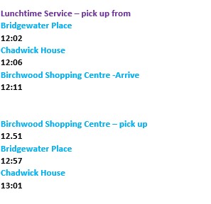 We are pleased to inform you that the lunch time Shuttle Bus service is back from Monday 5th September.